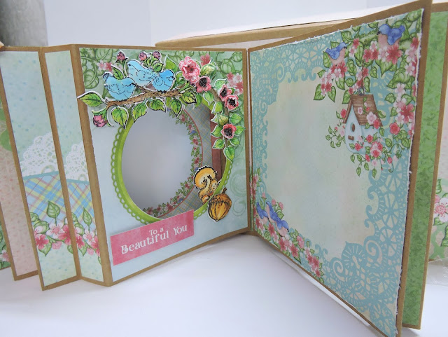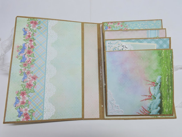 base with clear dry glue. For the second layer cut pattern paper 8- 3/4 x 6-3/4